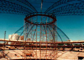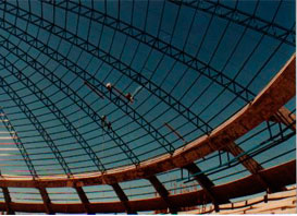 Obra: Fabricação e montagem de estrutura metálica para cobertura do ginásio de esportes Internacional Newton de Faria, Anápolis - GO.