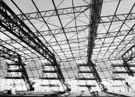perfil de chapa dobrada a frio, fabricada com aço anti-corrosivo USI-SAC 41 - Área: 5.292 mts² - Vão livre: 42 mts.