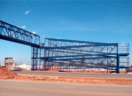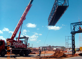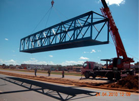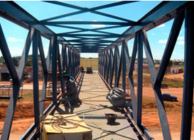 Obra: Projeto, fabricação, transporte e montagem de 05 passarelas metálicas sob a Rodovia BR 070, Águas Lindas/GO.